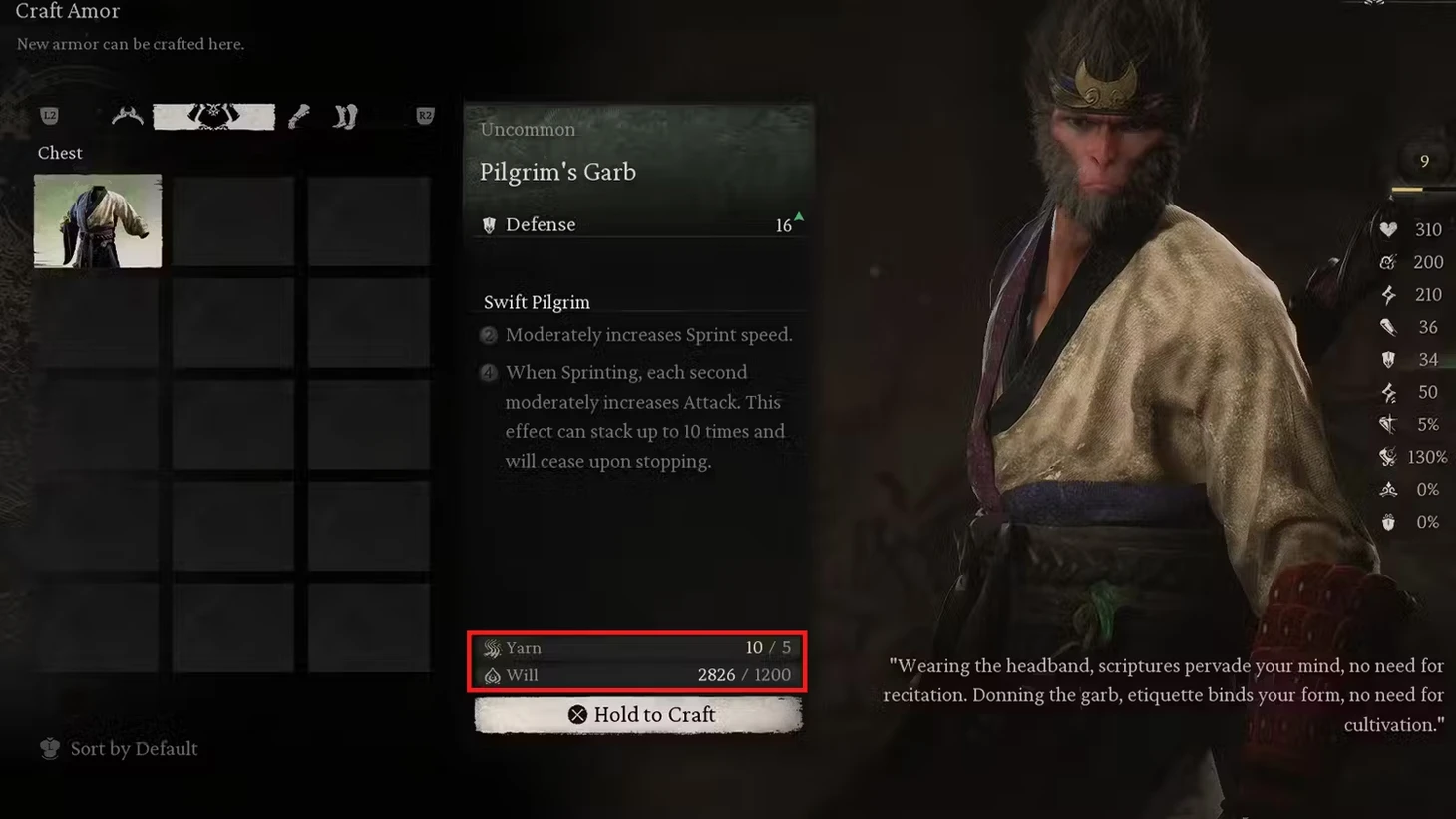 Помимо Воли, для создания доспехов потребуются и другие материалы, такие как Пряжа и Шелк. Их можно приобрести в магазине святилища или получить в качестве награды за выполнение заданий и исследование мира.