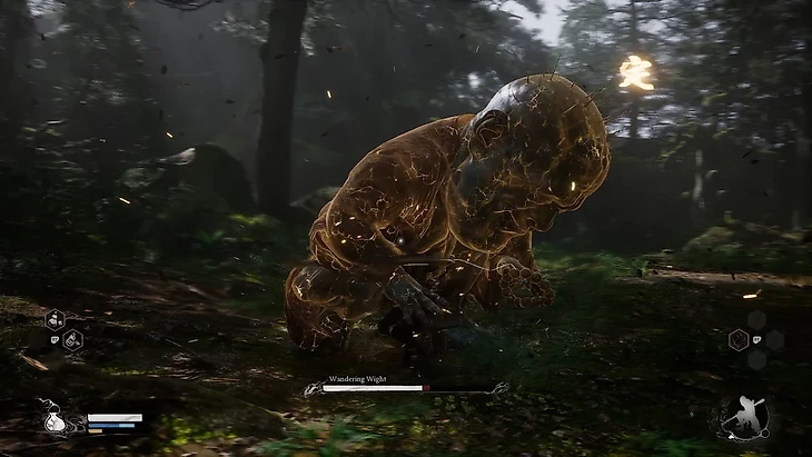 Ключ к победе над Wandering Wight — предвидение и нейтрализация его атак. Когда босс поднимает руку для землетрясения, используйте Обездвиживание, чтобы прервать атаку. Последующие комбо-удары и сильный удар выведут босса из Обездвиживания и отменят всю атаку. Если вы заметили, что Wandering Wight пошатнулся от ваших ударов, продолжайте атаковать. Мощный удар в этот момент может даже сбить босса с ног, предоставляя вам возможность нанести дополнительный урон. Даже если вы держитесь на расстоянии, будьте бдительны. Wandering Wight завершает серию взрывов быстрым движением рук и зарядом энергии, после чего выпускает мощную энергетическую волну. Эта атака наносит огромный урон, поэтому важно вовремя уклониться в сторону.