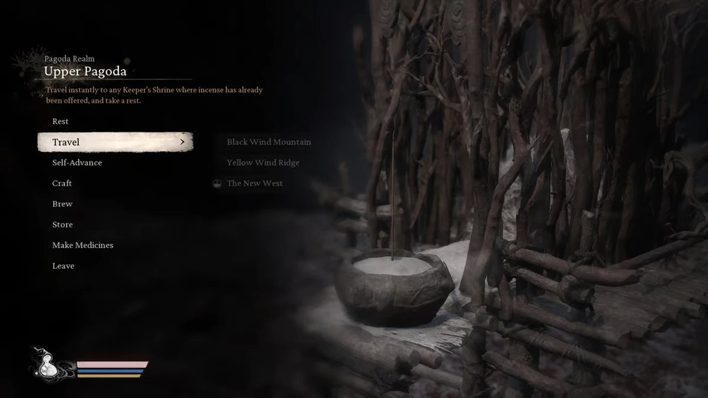 Святилище служит отправной точкой для путешествия к Великой Пагоде. Чтобы добраться до него, нужно пройти через начальную часть заснеженного региона, известного как Новый Запад. Исследуя эту местность, вы встретите NPC, который предложит вам помощь. Он превратит вас в птицу, и вы вместе совершите захватывающий полет над горами, пока не достигнете святилища. Не торопитесь исследовать Новый Запад. Здесь можно найти ценные предметы и скрытые локации, которые помогут вам в дальнейшем путешествии.