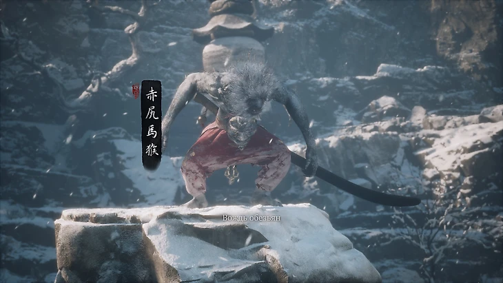 Расправившись с ними, возвращайтесь на основную тропу и пробивайтесь сквозь орды замерзших мертвецов. Старайтесь сражаться с ними по одному, чтобы не оказаться в окружении, и методично продвигайтесь вперед. Когда вы, наконец, достигнете вершины, перед вами раскинется просторное заснеженное поле, залитое холодным светом. Но не спешите праздновать победу – в центре поля вас уже поджидает таинственная обезьяна, готовая бросить вам вызов и испытать вашу силу и мужество. Так что соберитесь, проверьте снаряжение и приготовьтесь к бою.