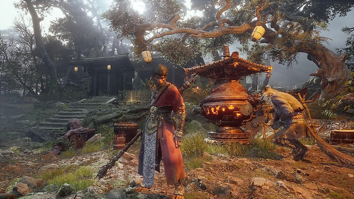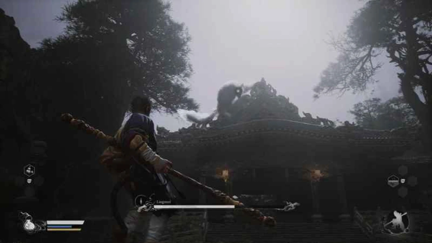 Путь через туннель ведет сквозь густой лес к знаменитому храму Гуаньинь. Будьте осторожны – вход охраняют Волки Гуай, включая лучника. Используйте вращение посоха для отражения стрел и не давайте врагам перехватить инициативу. Переступив порог храма, вы услышите предостережение Хранителя о грозном Яогуае, обитающем в этих стенах. Прежде чем ступить на площадь, где вас ждет битва, найдите время для отдыха и подготовки в Святилище. Здесь вы не только восстановите силы, но и обнаружите ценные ресурсы и новые возможности.