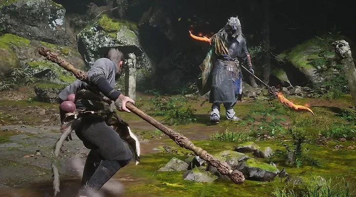 Эрлан Шень, несмотря на свою силу, сражается довольно предсказуемо, используя взмахи и выпады копьем. Он часто замедляется, предоставляя игроку возможность уклониться от его атак. В Black Myth: Wukong нет традиционной кнопки блока, поэтому уклонение, особенно в последний момент, становится важным навыком для выживания в бою.