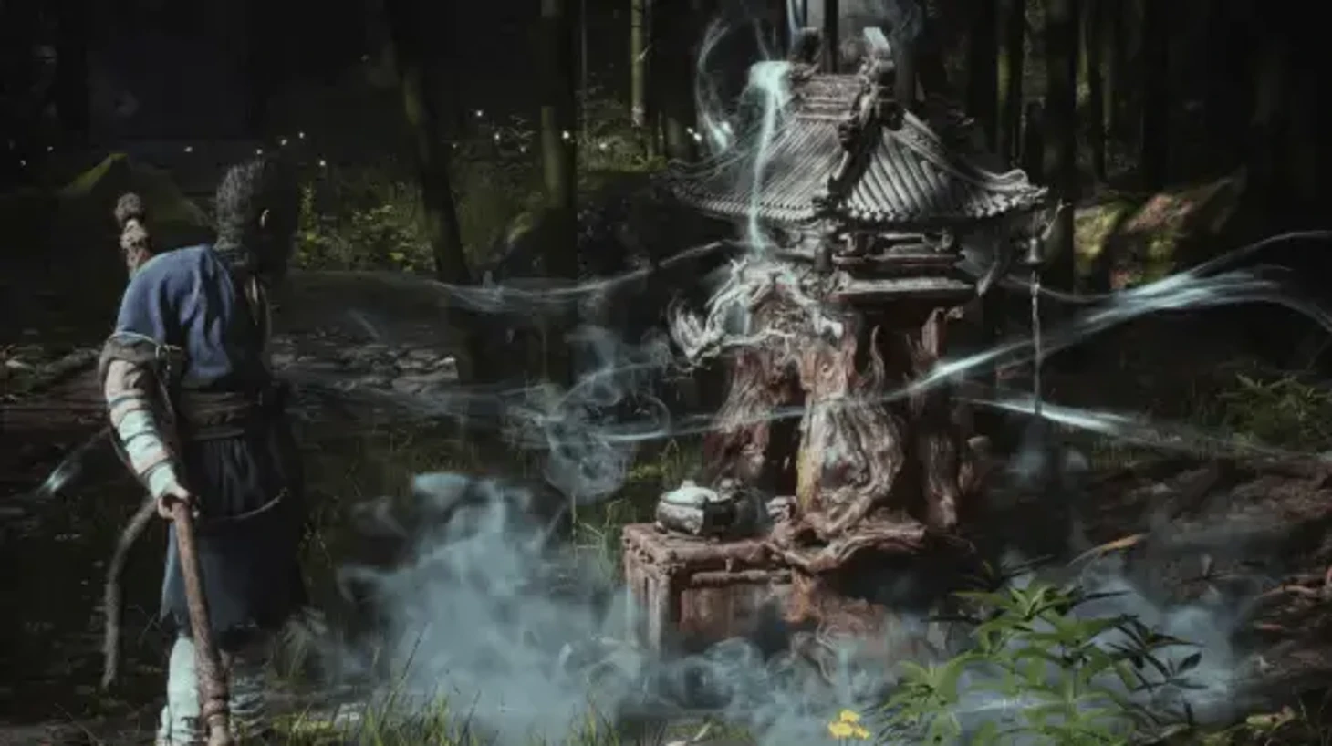 Неподалеку от святилища, у статуи волка, есть небольшая огороженная территория с зеленым пучком. Попытайтесь взаимодействовать с ним, чтобы получить дополнительную Волю и, возможно, редкий Фиолетовый Линчжи. Этот гриб может оказаться ценным ингредиентом для создания зелий или улучшения снаряжения.