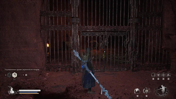 Приблизившись к Святилищу Верхней Пагоды, вы можете заметить неподалеку в туннеле камер большую яму со знакомым фиолетовым свечением снизу. Вы находитесь прямо над местом, где пересекали деревянную балку, а значит, та странная комната, которую вы видели в окно, располагается прямо под вами. В ней находится очень важный, но необязательный Вождь Яогуай. Победа над ним станет ключом к открытию фиолетовых печатей, замеченных вами по всему этому миру. Однако стоит отметить, что пока вы не одолеете Короля Яогуай этой зоны, сражаться с этим боссом по желанию придется под действием проклятия песнопения, иссушающего половину вашего здоровья.