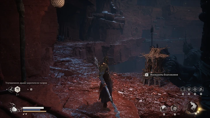 Перед схваткой с грядущим боссом вернитесь в храм и оцените прогресс. Потратьте волю на прокачку духов и создание мощного посоха Лунного плетения (победив Красного и Черного Лунов в 1-2 главах) или посоха Канцзинь с электрическим уроном (открыв навыки «Карающего ливня»). Улучшите Бутылку у Обезьяны Шэнь и запаситесь новыми предметами. Экипируйте «Облачный шаг» вместо «Каменной твердости» – он пригодится в бою.