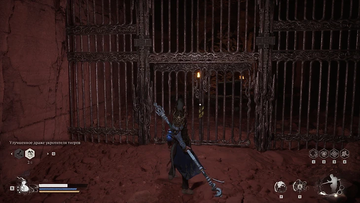 Внутренний туннель заканчивается запечатанными воротами камеры, а также Изголодавшимся Отродьем, которое попытается устроить засаду из угла. Дайте существу вдоволь намахаться своим серпом, а затем прикончите его парой ударов.