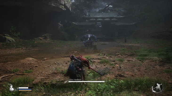 Расправившись с волками, охраняющими это место, вы сможете позвонить в последний колокол на Горе Черного Ветра. Этот акт откроет проход в секретную область, где вас ожидает схватка с уникальным боссом – Древний храм Гуаньинь.