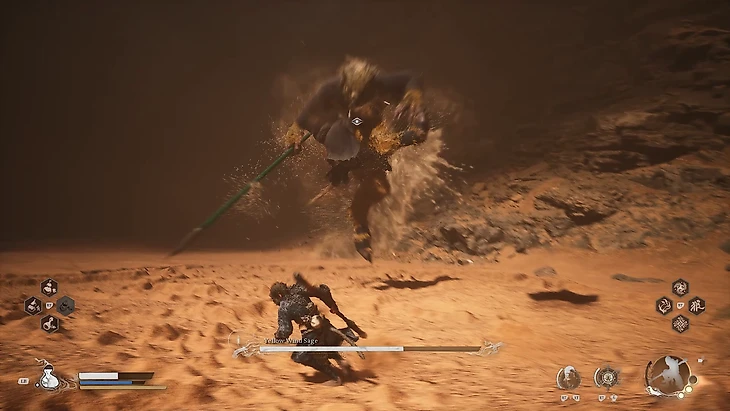 Мудрец Желтый Ветер находится в конце пути по Желтому Ветру. Эта гигантская крыса, вооруженная трезубцем-копьем и несущая в другой руке огромную голову, обладает не только внушительной физической силой, но и владеет магией Ветров Самадхи. Для борьбы с ним создайте достаточное количество лекарств, чтобы повысить поглощение урона и максимальное здоровье. Распределите все найденные Ядра Разума на усиления Небесной Медицины. Экипируйте полный комплект брони Galeguard или Insect, а также посох Cloud-Patterened Stone, полученный за победу над необязательным боссом Sihandang.