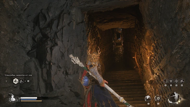 Стоит вам завернуть за угол направо, как взгляд невольно прикипает к небольшой деревянной платформе, на которой мерцает загадочный горшок. На страже этого сокровища стоит новый грозный противник. Встречайте Черепашье Сокровище – коренастого яогуая с устрашающим черепом вместо лица и массивной булавой наперевес. Этот крепыш способен одним махом снести вам голову широким замахом своего оружия или припечатать к земле мощным ударом. А если вам вдруг покажется, что этого мало, он с радостью выпятит в вашу сторону свое пузо, прямо как боссы Лягушки Гуай, или сиганет в воздух, чтобы приземлиться на вас своим увесистым задом.