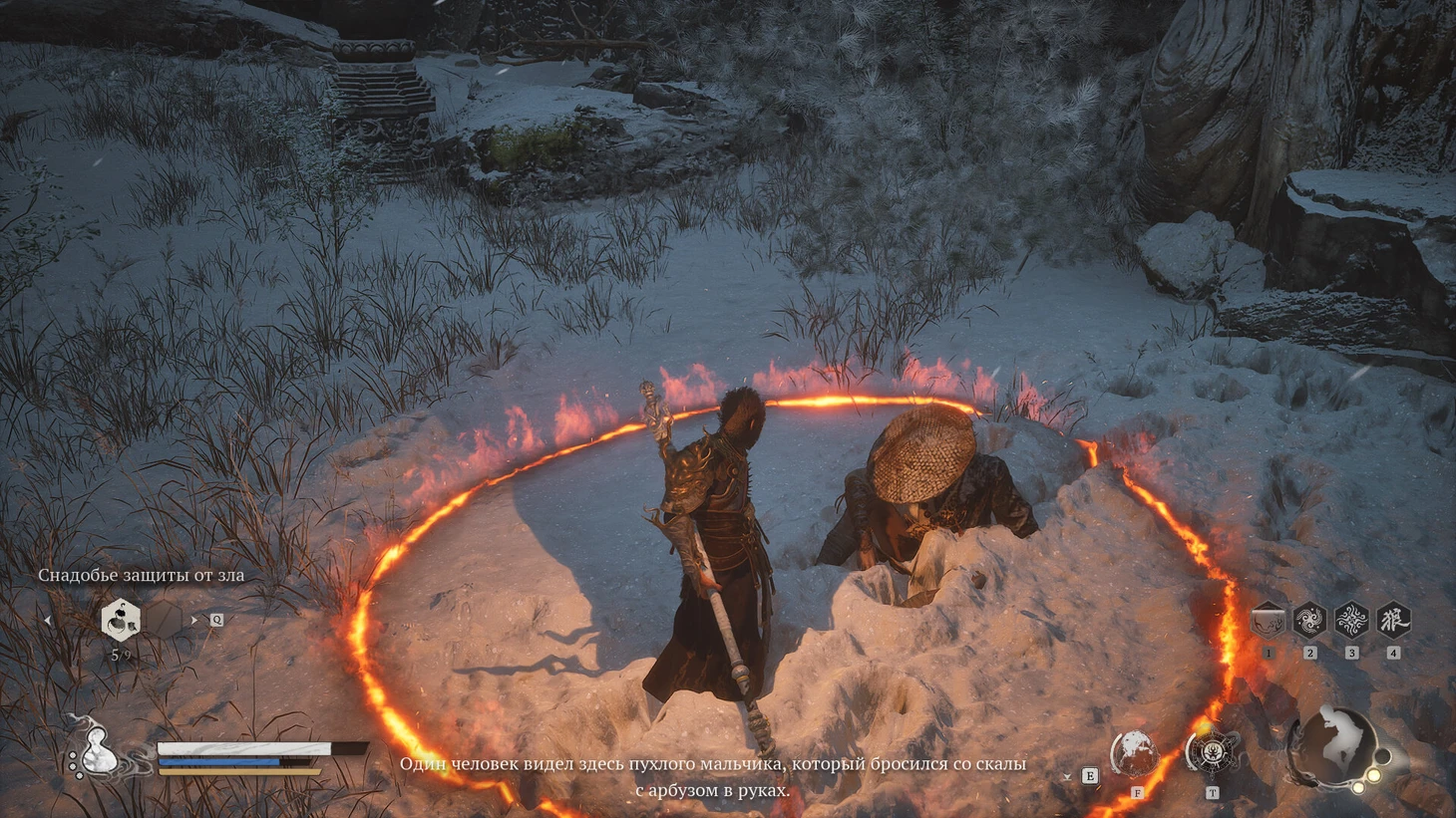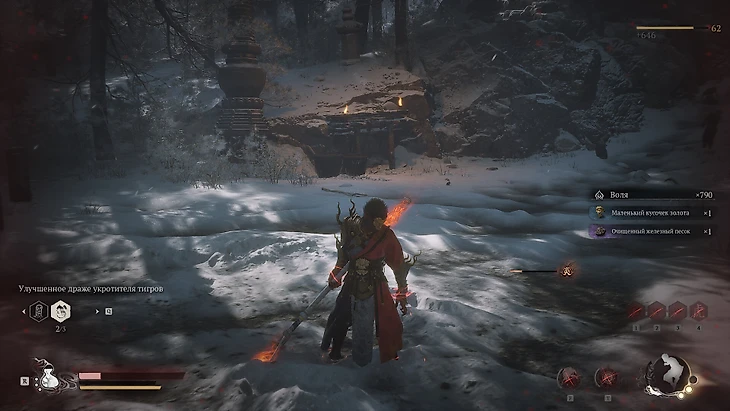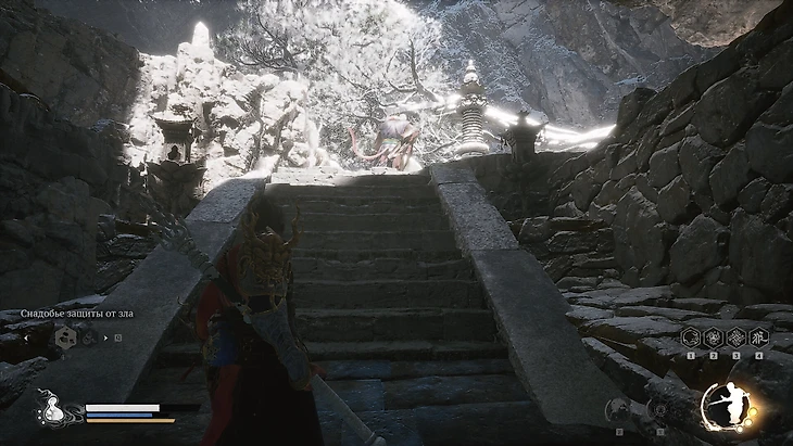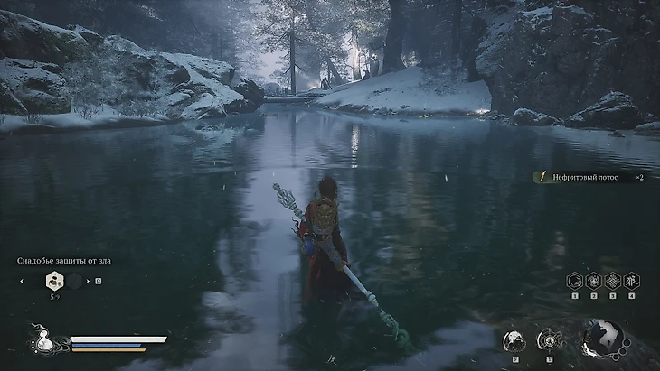 Разделавшись с главарем Яогуаев, не забудьте тщательно осмотреть пространство за массивным каменным монументом неподалеку от места сражения с мини-боссом. На небольшом заснеженном столике вы обнаружите экстракт нефрита – новый напиток для фляжки, восстанавливающий не только здоровье, но и ману.