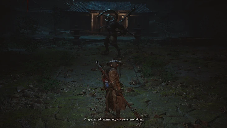 Одержав победу над коварным врагом, вы услышите, как он упомянет Гору лиловых облаков, и в тот же миг рядом появится загадочная стена. Взаимодействуйте с ней, чтобы проникнуть на легендарную вершину и раскрыть тайны, сокрытые в ее туманных недрах. Квест монаха, ищущего противоядие, нужно сдать до того, как убьете финального босса этой локации. И скорпиона тоже, если проходите боссов на 100%.