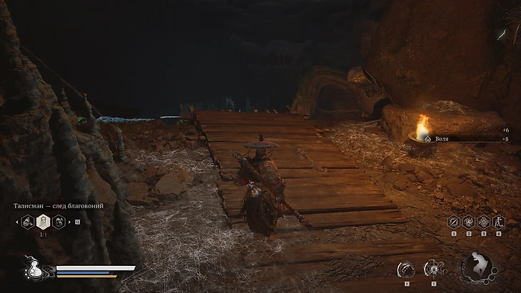 Смело ступайте на этот путь и спускайтесь к центру этого места, следуя по дощатому настилу, пока не достигнете его конца, где придется совершить небольшой прыжок вниз.