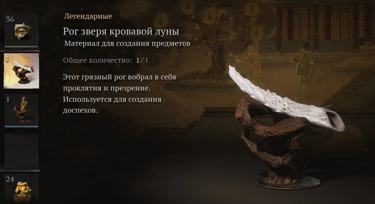Рог зверя кровавой луны – материал с босса секретной локации Гора Лиловых облаков в четвертой главе Black Myth: Wukong. Избранный попадает туда после победы над Даосом-отравителем.