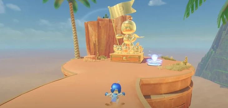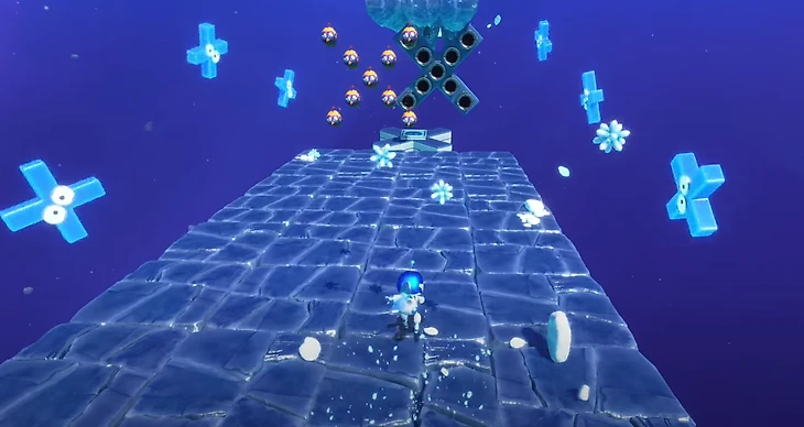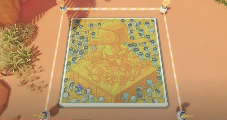 После того как вы соберете всех 300 ботов и 120 частей пазла, в мире-хабе — на планете, обозначенной как «Место крушения» — появится золотая статуя. После взаимодействия со статуей все собранные вами боты выстроят стену, которая позволит вам добраться до загадочного 301-го бота.