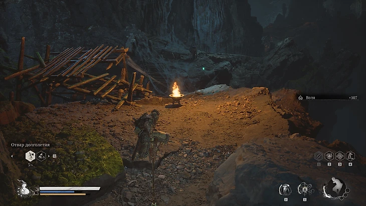 Теперь поищите высокий уступ на вершине платформы. Справа вы заметите Сундук, который сторожит одинокий лучник. Внутри вас ждут редкие предметы, такие как Пилюля Семикратного Огня Сердца, Узел Пустоты или Кровь Железного Быка.