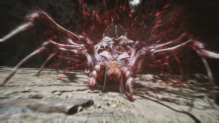 Лиловая паучиха принимает облик огромного паука с лезвиями. Уворачивайтесь от яда и паутины. Она начинает с выстрела паутиной в широкой дуге, за которой следует залп ядовитых снарядов. Знайте ее приемы: обманный удар ногой, серию нисходящих ударов и прыжок с ударом. Даже зная эти атаки, она разбрызгивает яд, ограничивая контратаки. Топает ногами, разбрызгивая яд. Держитесь справа, следите за ударом когтем. Поддергивает телом, резко бьет сзади. Нити паутины замедляют и наносят урон. Отражайте атаки вращением посоха.