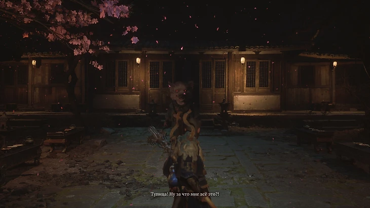 Свинья использует болезненные атаки на своей территории, от которых трудно уклониться. Грязь замедляет уклонение, но не бег. Лучше бежать, чем ждать уклонения в последний момент. Он повторяет приемы из Хижины Бессмертия с небольшими изменениями. Превращается в торнадо, от которого лучше убегать. После прыжковой атаки превращается в гигантского грязевого карпа, который попытается раздавить вас. Следите за скоростью его атак граблями и используйте комбо со стойкой столпа. Когда половина здоровья исчезает, превращается в кабана с атаками головой и прыжками. После урона превращается в разных зверей с уникальными атаками. Уклоняйтесь от приземления, от удара задними ногами. Превращаясь в карпа, подпрыгивает в воздух. Ударная волна по грязи трудно избегаемая. Превратившись в носорога, призывает копии для атаки с флангов. Уклоняйтесь или отражайте атаки, атакуйте его ошеломленную форму кабана всеми накопленными очками концентрации и мощными атаками Духа.