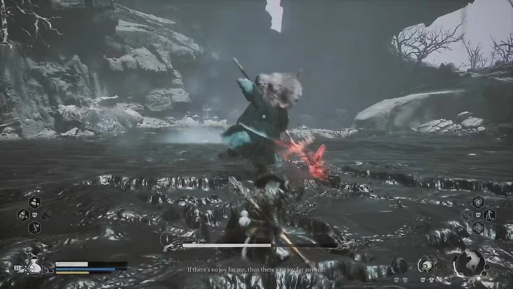 Наконец, Чжу Бацзе может превращаться в носорога-грязи и создавать клонов, мчащихся на игрока. В этом случае рекомендуется отступить и внимательно следить за всеми носорогами, чтобы избежать столкновения. Даже если здоровье Чжу Бацзе будет сведено к нулю во время этой атаки, битва продолжится, и потребуется нанести еще один удар после ее завершения.