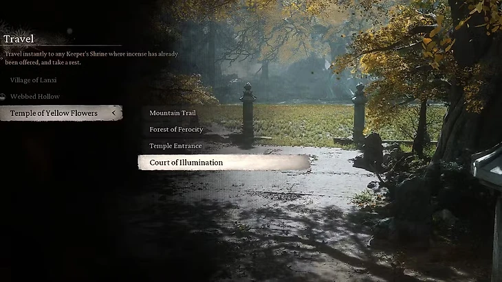 Вторая встреча в Храме Желтых Цветов происходит не сразу после святилища Двора Иллюзий. Сначала необходимо вернуться назад и пройти мимо пары даосов Посоха, которые, скорее всего, будут стоять на страже или просто медитировать. Путь продолжается вперед по извилистой тропе, которая ведет в гору. Спустя какое-то время подъема игрок оказывается перед развилкой, предлагающей два пути: налево вниз или направо вниз. Выбрав путь налево, путник спускается на просторную площадь, где его ожидает встреча с Даосом Отравителем.