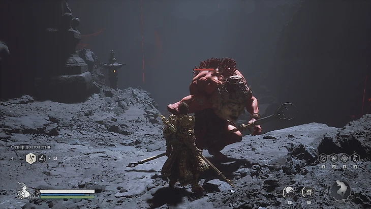 Светлые призраки – крупные враги с дубинами, темные – лучники. Сосредоточьтесь на лучниках, их атаки опаснее. Быстро уничтожьте всех призраков, чтобы вернуться к бою с Хранителем. Когда его здоровье упадет до 30%, Чжу Бацзе покинет вас. Незадолго до своего поражения босс призовет на подмогу Ма Тяньба.