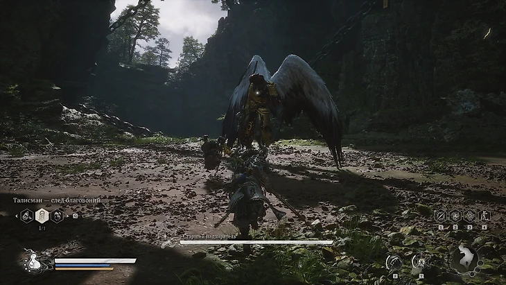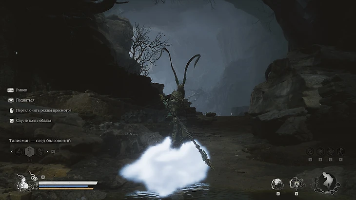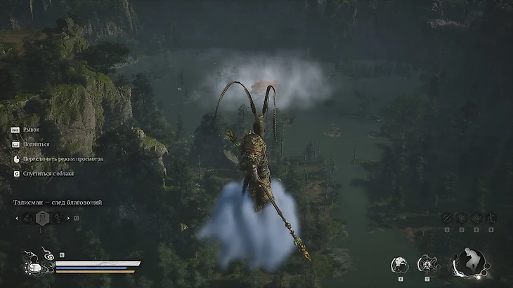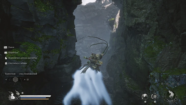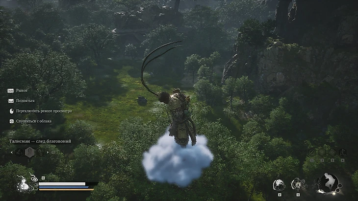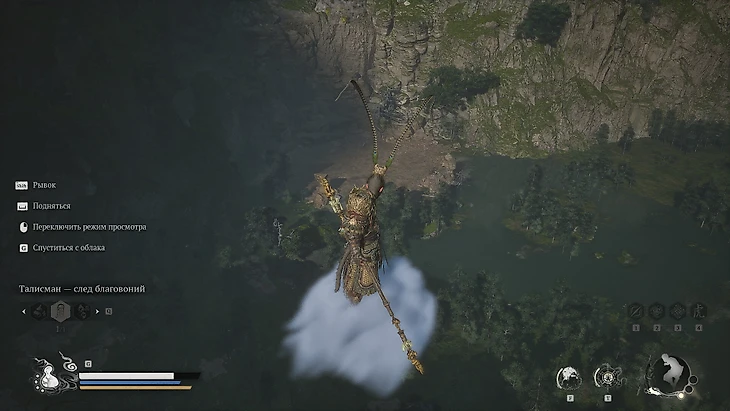 Одолев босса, герой будет унесен им в полет. В результате Избранный овладеет техникой Летающего Облака Сунь Укуна. Для его вызова используйте нижнюю кнопку крестовины или клавишу G на ПК. По завершении кат-сцены вы окажетесь у обрыва. Воспользуйтесь новообретенным умением для исследования окрестностей.