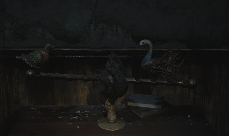 Разрушьте треснувшую часть стены и загляните в заполненный унитаз. Там найдете минутную стрелку. Возвращаясь в жилище, вы обнаружите, что за короткое время вашего отсутствия обстановка резко ухудшилась. На полке заметите сидящего голубя, а в помещение внезапно ворвется Лживая Фигура и нападет на вас. После ее уничтожения поместите голубя на насест.