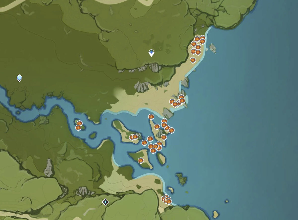Крабов можно поймать в любой части Тейвата, за исключением пустынной части Сумеру. Они убегают, когда к ним приближаешься, поэтому запаситесь терпением при фарме. Добавьте в отряд двух Анемо персонажей для повышения скорости передвижения, а также воспользуйтесь едой, которая сокращает расход выносливости при спринте.