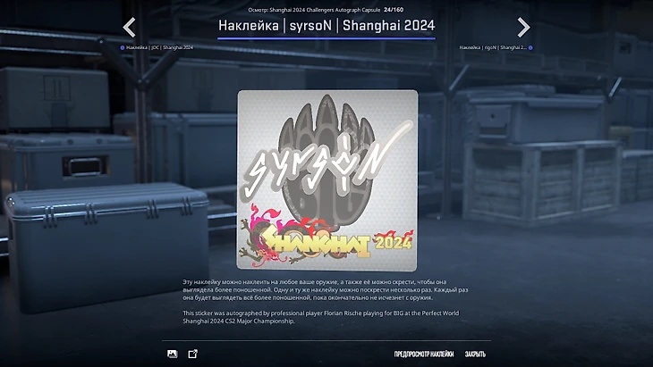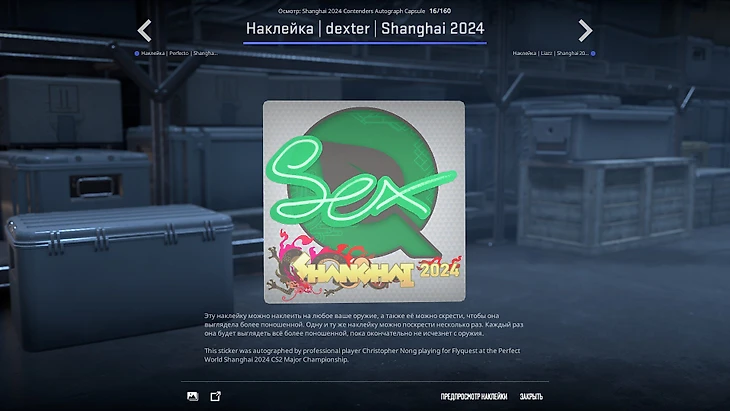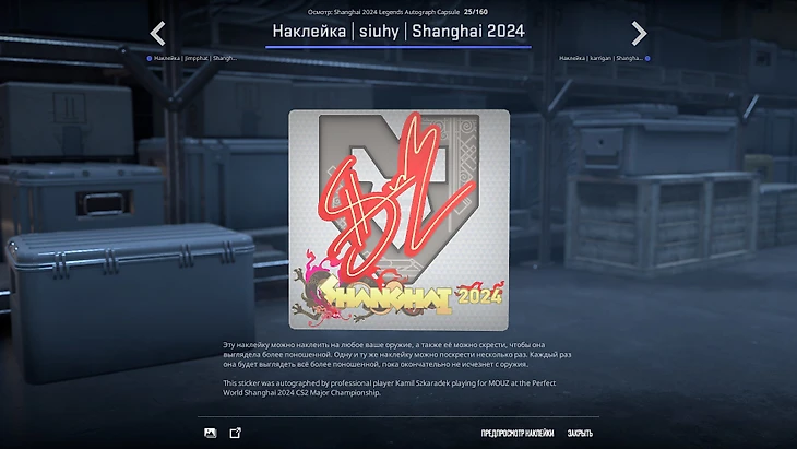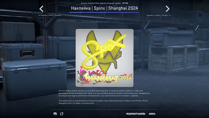 Автографы игроков – самый желанный предмет с мейджора. На Perfect World Shanghai Major 2024 Valve немного изменила правила их подачи: теперь каэсеры должны ехать на место проведения турнира в Шанхай и самостоятельно и от руки рисовать свой автограф. Так сделали, потому что раньше игроки не всегда справлялись с первого раза и получали отказ, потому что пользовались помощью дизайнеров (а это запрещено правилами) и использовали чужие шрифты.