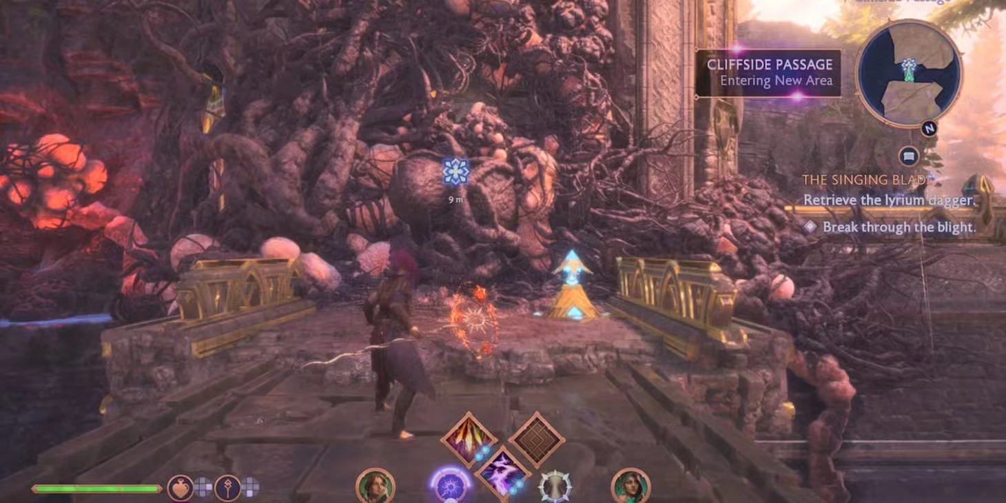 При прохождении Dragon Age: The Veilguard игроки не раз столкнутся с достаточно сложными квестами. Иногда от вас потребуется победить целую орду монстров, иногда пообщаться с десятком NPC, а иногда – применить навыки логики и разгадать пару-тройку головоломок. Один из таких квестов – Поющий клинок, пятый основной квест в первом акте игры. В этом квесте вы преследуете моба Darkspawn Ghoul, чтобы получить кинжал Соласа. По мере прохождения вы повстречаете несколько препятствий, среди которых будут и головоломки, и опасные мобы.