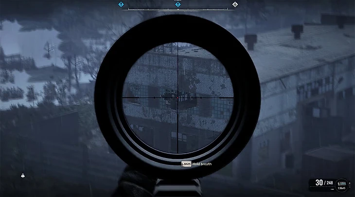 Устраните стрелка, скрывающегося в башне, затем подойдите к окну с видом на территорию. Оттуда вам должны быть хорошо видны Султан и Борода, ведущие беседу возле большого разбитого окна. Если вы не захватили с собой снайперскую винтовку Рысь, воспользуйтесь уникальным автоматом AR416, прислоненным к окну.