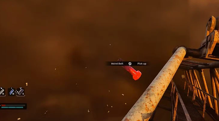 После размещения в слоте быстрого доступа Странный болт начинает излучать красноватое сияние, видимое в инвентаре. Это означает его готовность к использованию. Однако после поглощения определенного количества урона, сияние исчезает, указывая на необходимость перезарядки.
