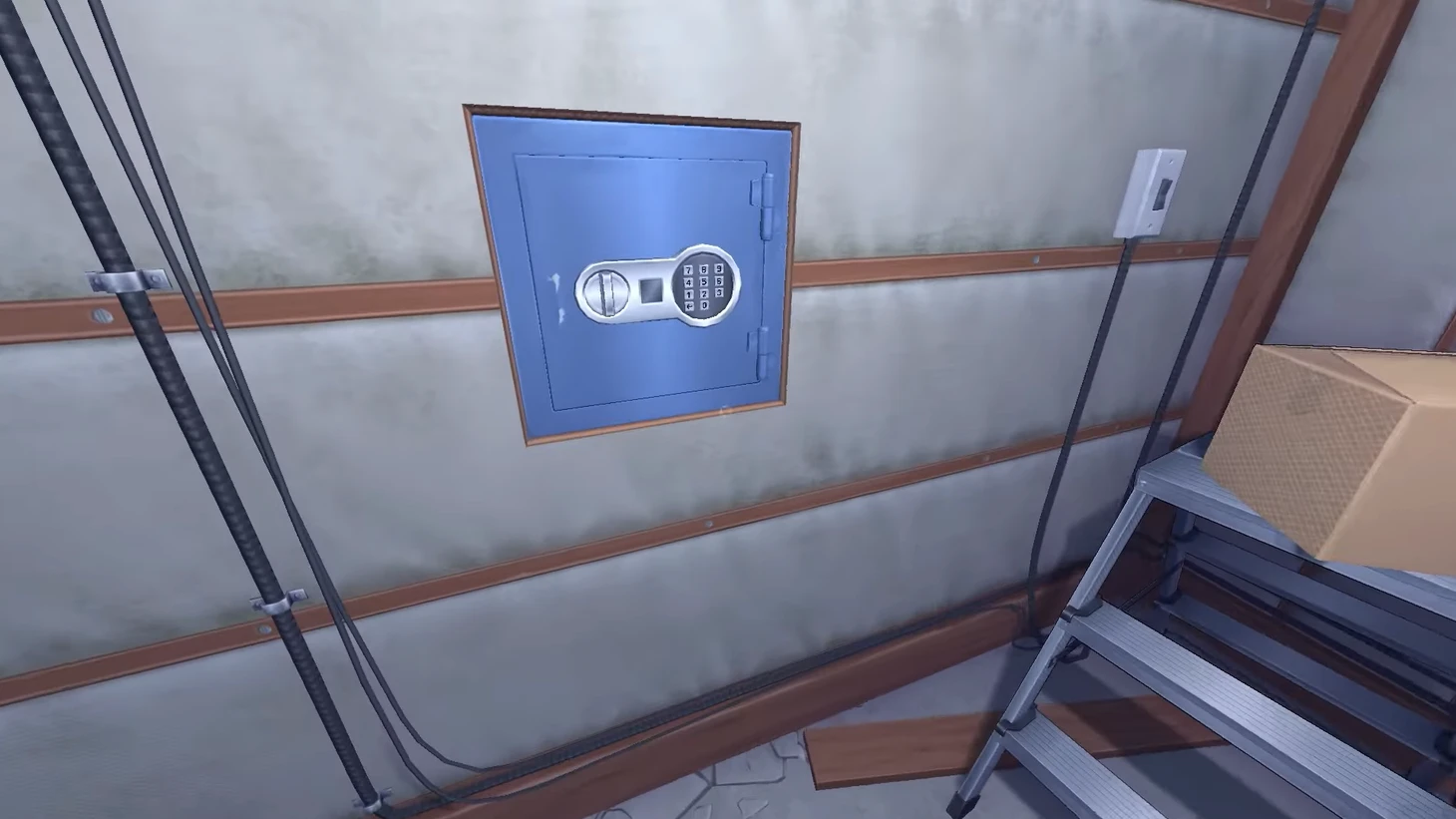 Чтобы попасть в подвал, спуститесь по деревянной лестнице и поверните налево, после чего обойдите все стеллажи. В глубине комнаты вы найдете синий сейф на стене.