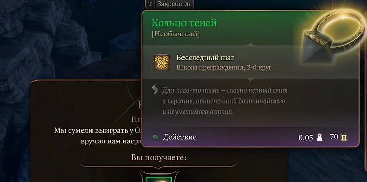 Независимо от того, каким способом вы одолеете Оливера, вы получите Кольцо теней, дающее владельцу и его спутникам бонус +10 к проверке скрытности.