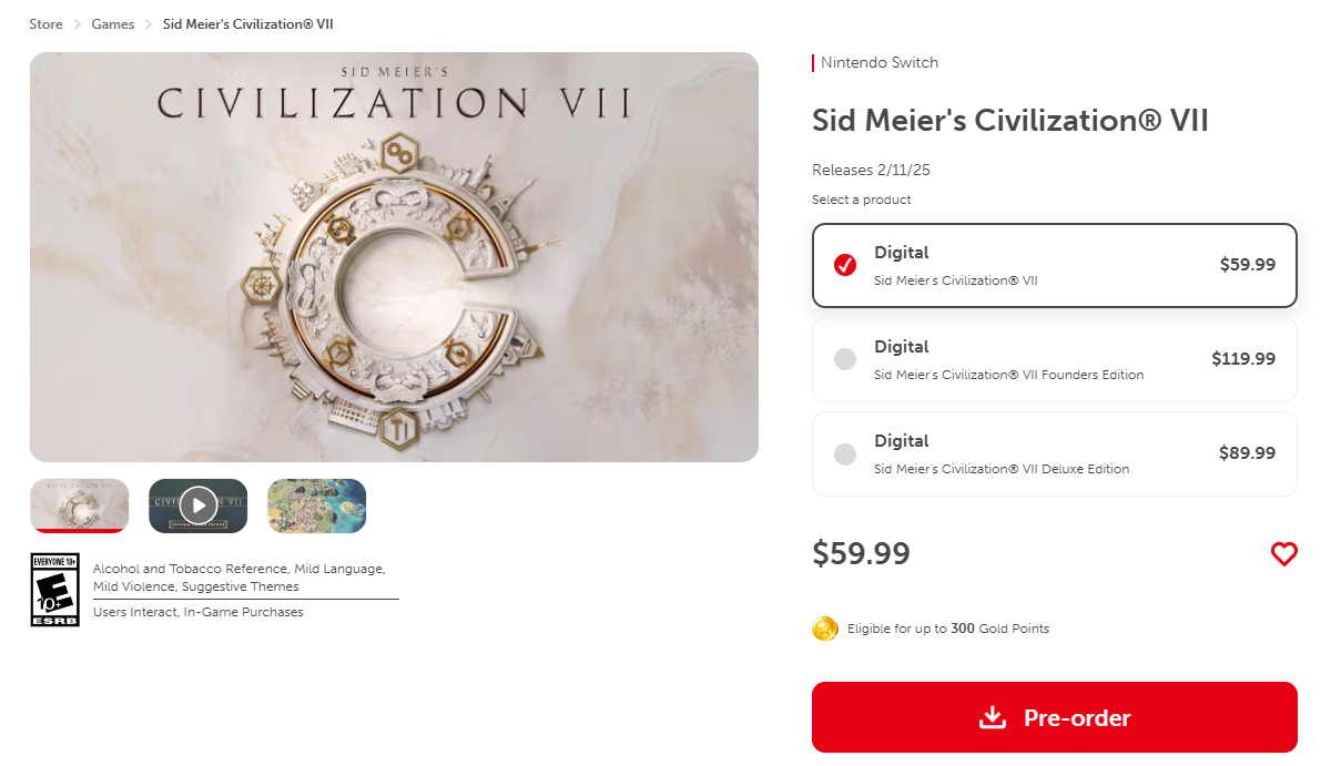 К сожалению, вы увидите ее и на странице Sid Meier’s Civilization 7, потому что игра недоступна на территории РФ. Специально для этого мы подготовили для вас гайд, как приобрести игру на ПК, PS5, Xbox и Nintendo Switch. Цена на проект различается в зависимости от региона и платформы, а также издания.