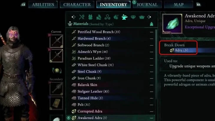 После перехода в район Изумрудной лестницы вы обнаружите более совершенный вид минерала – Пробужденную адру. Этот улучшенный материал становится необходим для создания более мощного снаряжения. С продвижением по сюжету ассортимент торговцев будет расширяться, открывая доступ к еще более редким разновидностям адры.