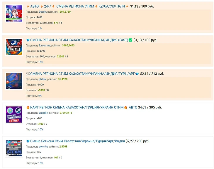 Также можно приобрести ключ на популярных площадках. Выберите продавца, у которого высокий рейтинг, и внимательно проверьте, чтобы отзывы были не накручены – например, не оставлены в одно время. Зачастую игры нельзя подарить в российский регион, если они недоступны, поэтому порой продавцы берут данные от вашего аккаунта и сами меняют регион. Обращайте внимание на слова «С заходом» или «Подарком» в заголовке – какой способ будет вам предпочтительнее. Стоимость может значительно отличаться в зависимости от региона.