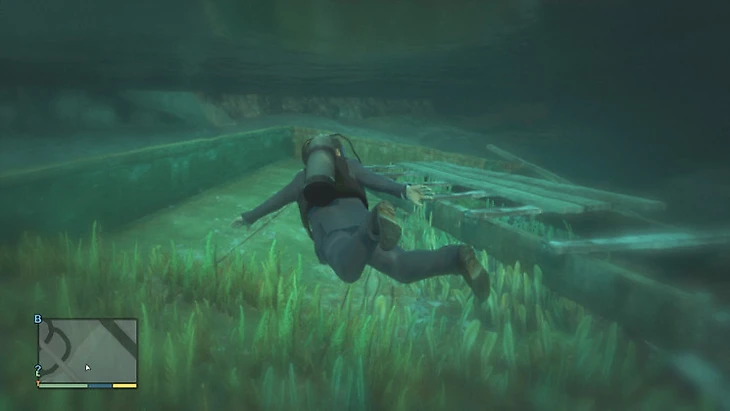 В левом нижнем углу экрана, рядом со шкалой здоровья, расположена синяя полоса. Это индикатор запаса воздуха. Когда герой погружается под воду, полоска постепенно уменьшается. Если кислород закончится, персонаж начнет терять здоровье, и если вовремя не всплыть, игра закончится печально.
