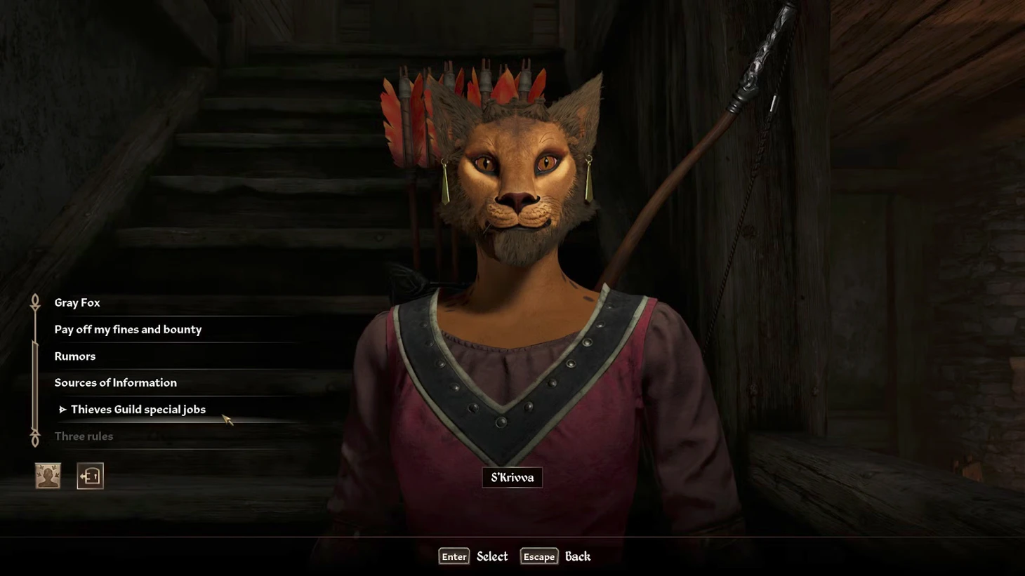 С’Кривва расскажет о проблеме бывшей воровки Адарджи, у которой украли ценное кольцо. Чтобы начать квест, отправляйтесь в Лейавин и найдите Адарджи. Она часто бывает в таверне «Три сестры» вечером или обедает в «Пяти когтях» днем. Если не удается ее найти, поговорите с местными нищими — за небольшую плату они подскажут, где ее искать.
