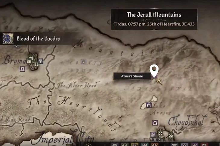 у святилища Азуры, если активен квест «Кровь Даэдра» — там появляются три огонька;