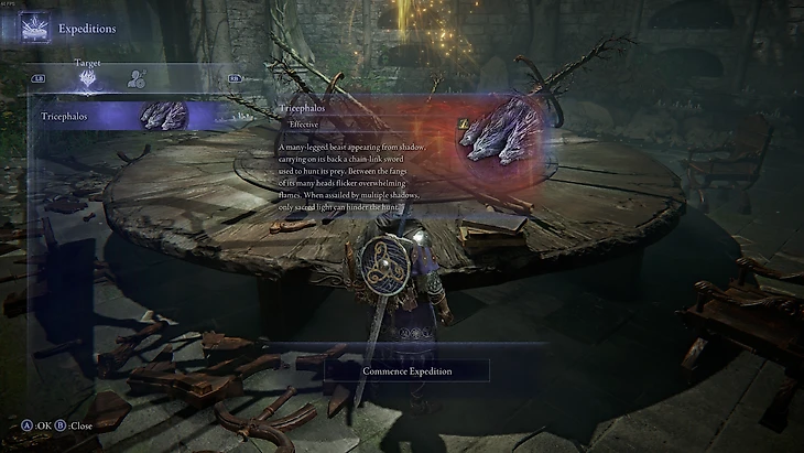 Как только вы разобрались с туториалом, вас перемещают в Крепость Круглого Стола. Она станет вашей штаб-квартирой в ходе путешествий по Лимвельду. Чтобы начать новую экспедицию, двигайтесь прямиком к огромному столу в центре зала. Система сама подскажет действие «Начать экспедицию» при приближении. Вот подробная инструкция: