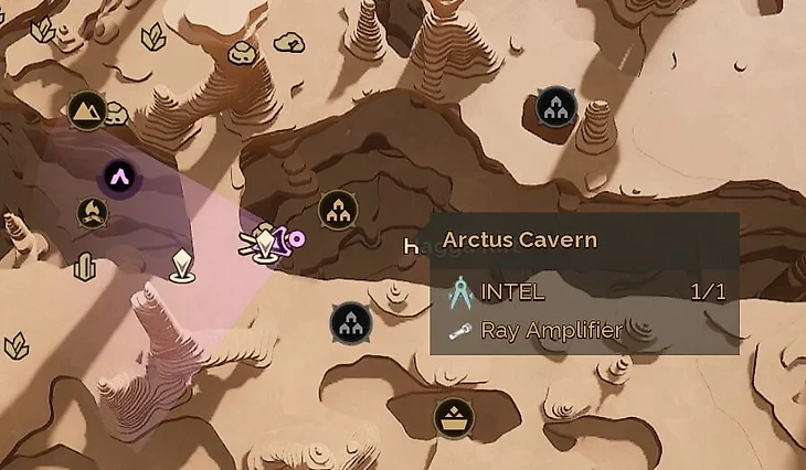 В юго-западном направлении от «Крушения Тисифона» (The Wreck of Tisiphone) находится пещера Арктус, еще одно отличное место, где можно раздобыть усилители лучей. Здесь небольшое пространство можно зачистить всего за пять минут и получить от трех до четырех десятков усилителей. Маленький совет: запаситесь кристаллами эритрита, когда отправляетесь фармить усилители лучей, позже вам понадобится много кобальтовой пасты.