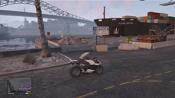 Следующий объект находится в доке. Следуя в западном направлении, можно обнаружить компактный трамплин, с которого предстоит совершить прыжок через водное пространство.