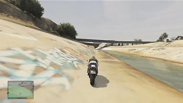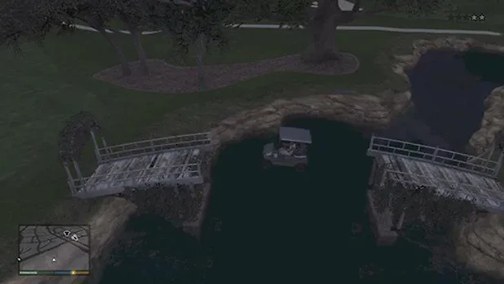Юго-восточный угол поля для гольфа Лос-Сантоса предлагает использовать в качестве трамплина конструкцию небольшого разрушенного моста.
