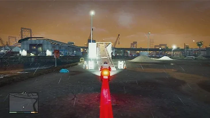 В районе городка Палето-Бэй располагается строительная площадка, оснащенная трамплином. Задача игрока – разогнаться, взлететь с него и благополучно приземлиться на территории автостоянки, что находится прямо по курсу.