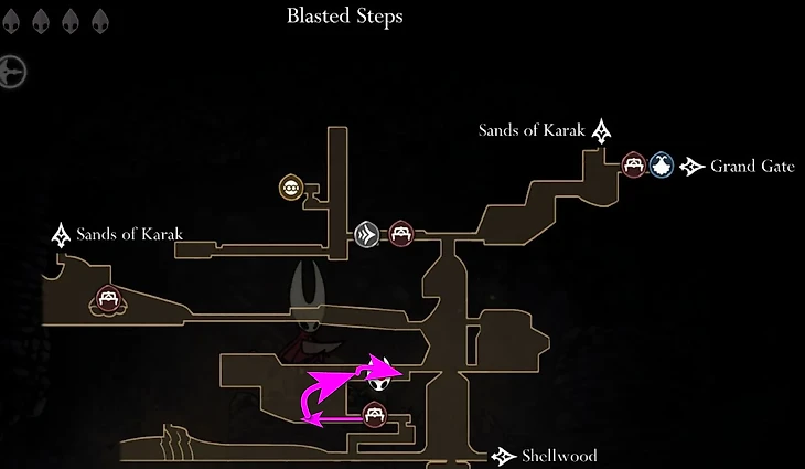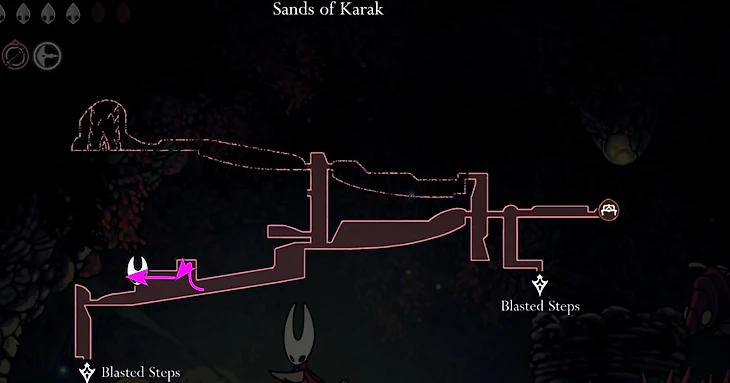 Чтобы переместиться из локации «Подточенные ступени» в «Пески Карака» с платформенными секциями, вам необходимо следовать определенному маршруту. Оказавшись в новом месте, обратите внимание на артефакт, расположенный в левой части. Далее вам предстоит преодолеть участок с шипастым полом, используя для этого исчезающие ветви. После того как вы пройдете этот участок, обернитесь и воспользуйтесь вновь появившимися ветвями, чтобы подняться в верхний левый угол.
