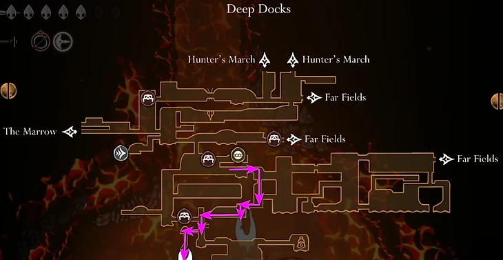 В глубинах «Глубоких доков», в их нижней части, таится еще один ценный экземпляр. Ищите рядом с камерой, где находится ныряющий колокол. В тесной шахте вы заметите непрочную стену – уничтожьте ее, и перед вами откроется проход в туннель, усеянный раскаленными шипами. Спускаясь вниз, действуйте осторожно – и награда будет вашей. Доступ к этому месту открывается в 3 акте.