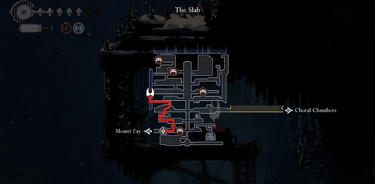 Находится в локации Плита (Slab), на правом краю Горы Фей. Требуется наличие Ключа Еретика для доступа в область. Передвигайтесь быстро, так как Хорнет постепенно замерзает в этой зоне.