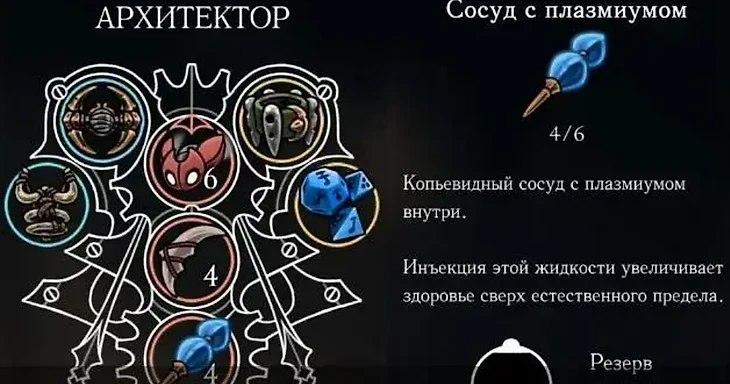 После того как вы соберете все три бутона и вернетесь к Зилотолу, алхимик наградит Хорнет редчайшим инструментом – сосудом с плазмиумом. Этот предмет устанавливается в слот ловушки и позволяет временно усилить здоровье, создавая дополнительные синие маски. Такой бонус особенно полезен в долгих боях и во время исследования опасных областей, где нет скамеек для отдыха.