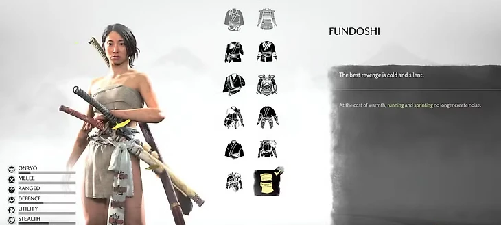 Единственное преимущество – абсолютная бесшумность движений, даже при беге. Защиты фундоси не дает вовсе и не имеет никаких бонусов к характеристикам. Этот наряд скорее испытание для опытных игроков, которые хотят проверить свои навыки без брони.