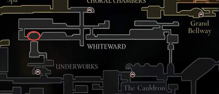 Местонахождение. Находится в той же локации – Шепчущих катакомбах, ближе ко входу в Нижние цеха.